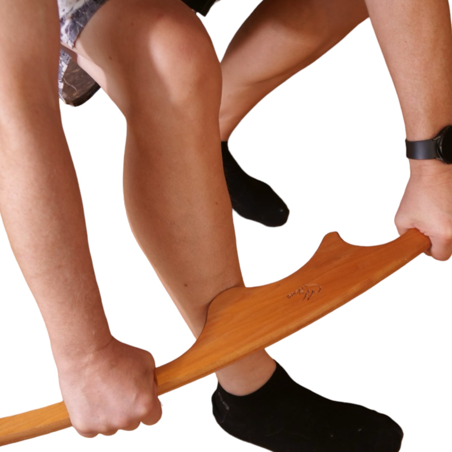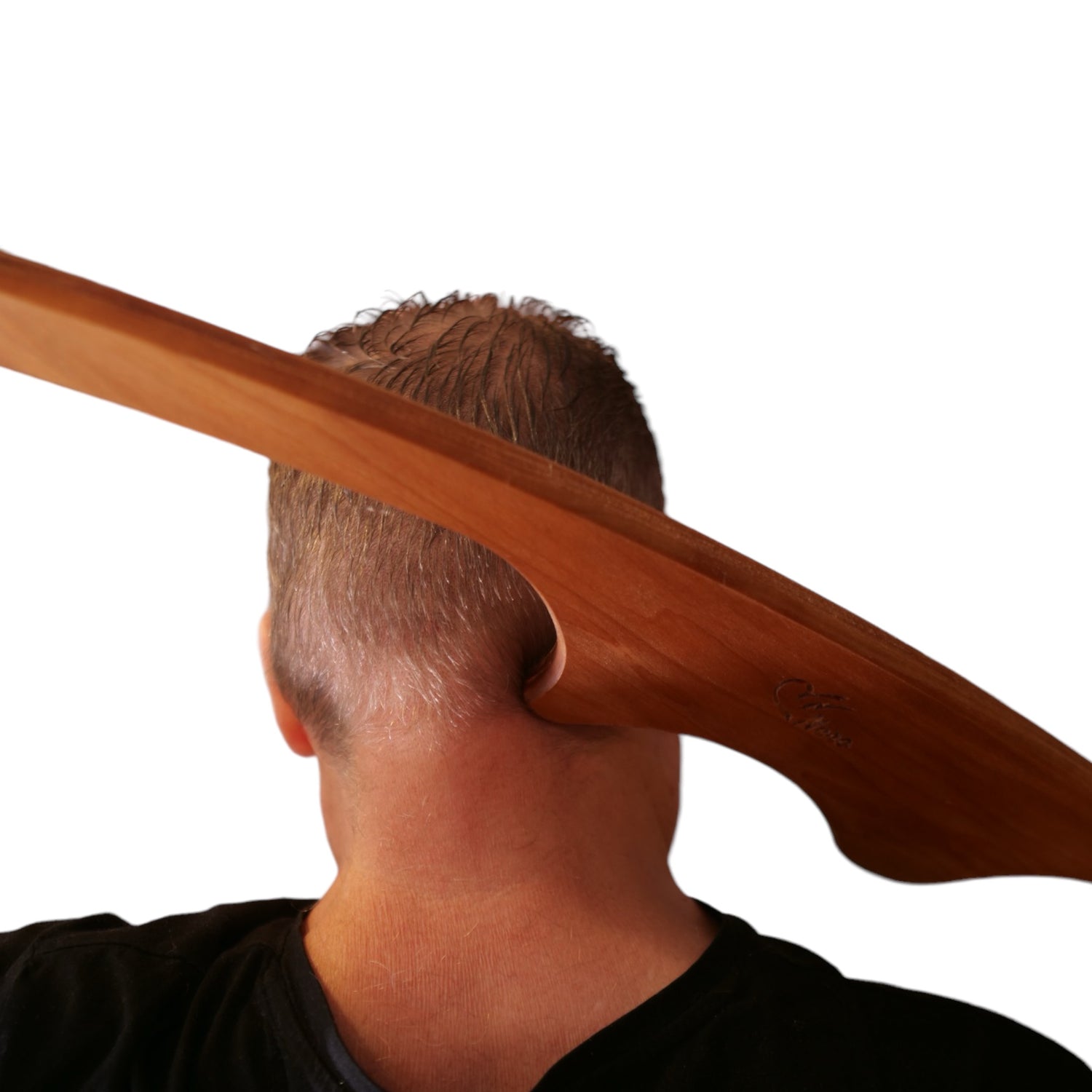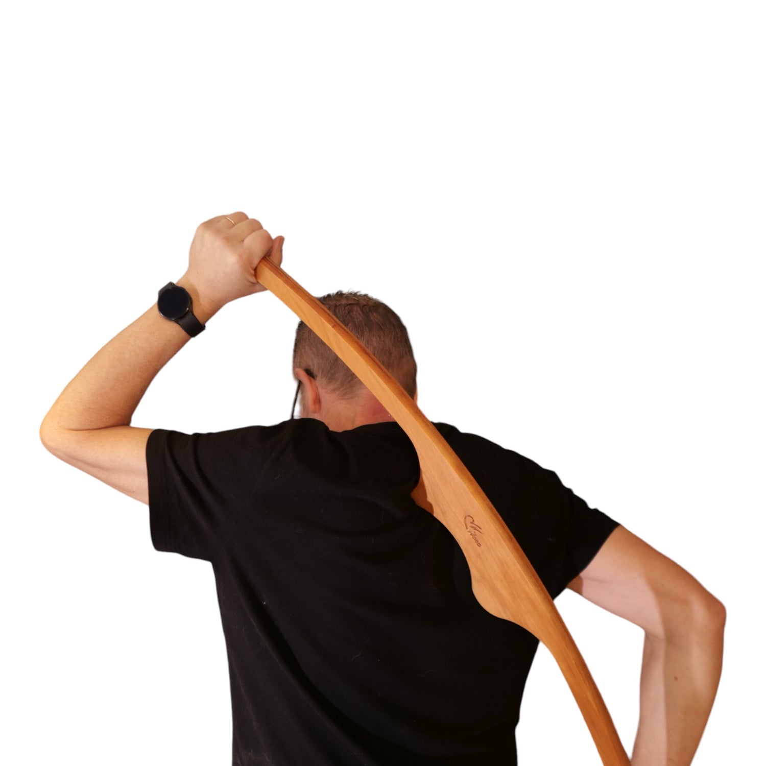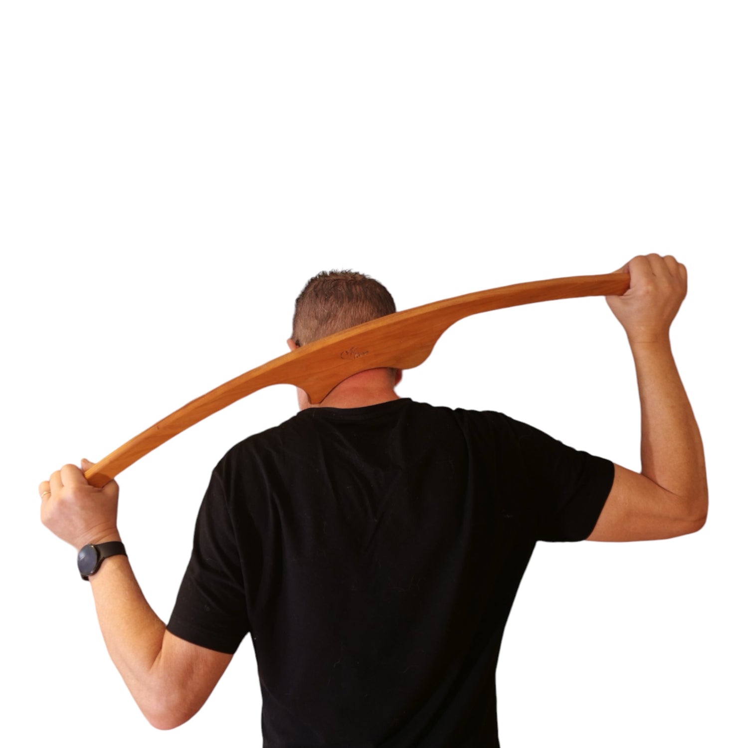 Sivele ja hiero selkää edestakaisin. Kaaren pienemällä päällä pääset syvälle lihakseen ja painelemaan kipupisteitä. Lähde selkärangan vierrestä ja hiero sivulle päin. Pidä kaaren toinen pää paikallaan, näin saat käyttöön enemmän voimaa.